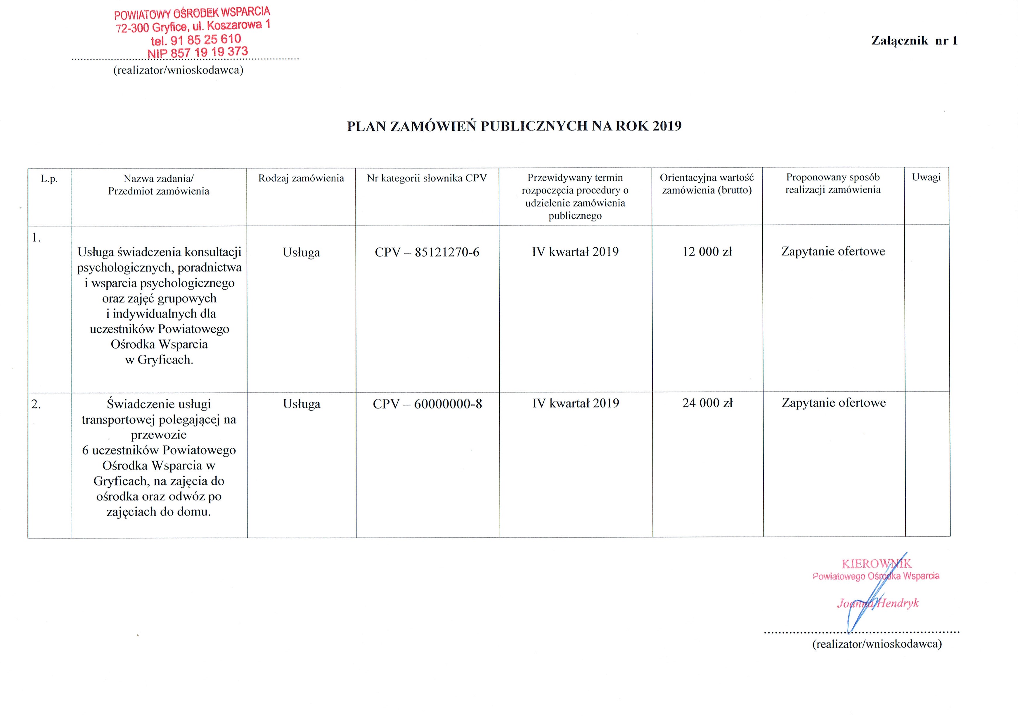 Plan zamówień publicznych na 2019 rok