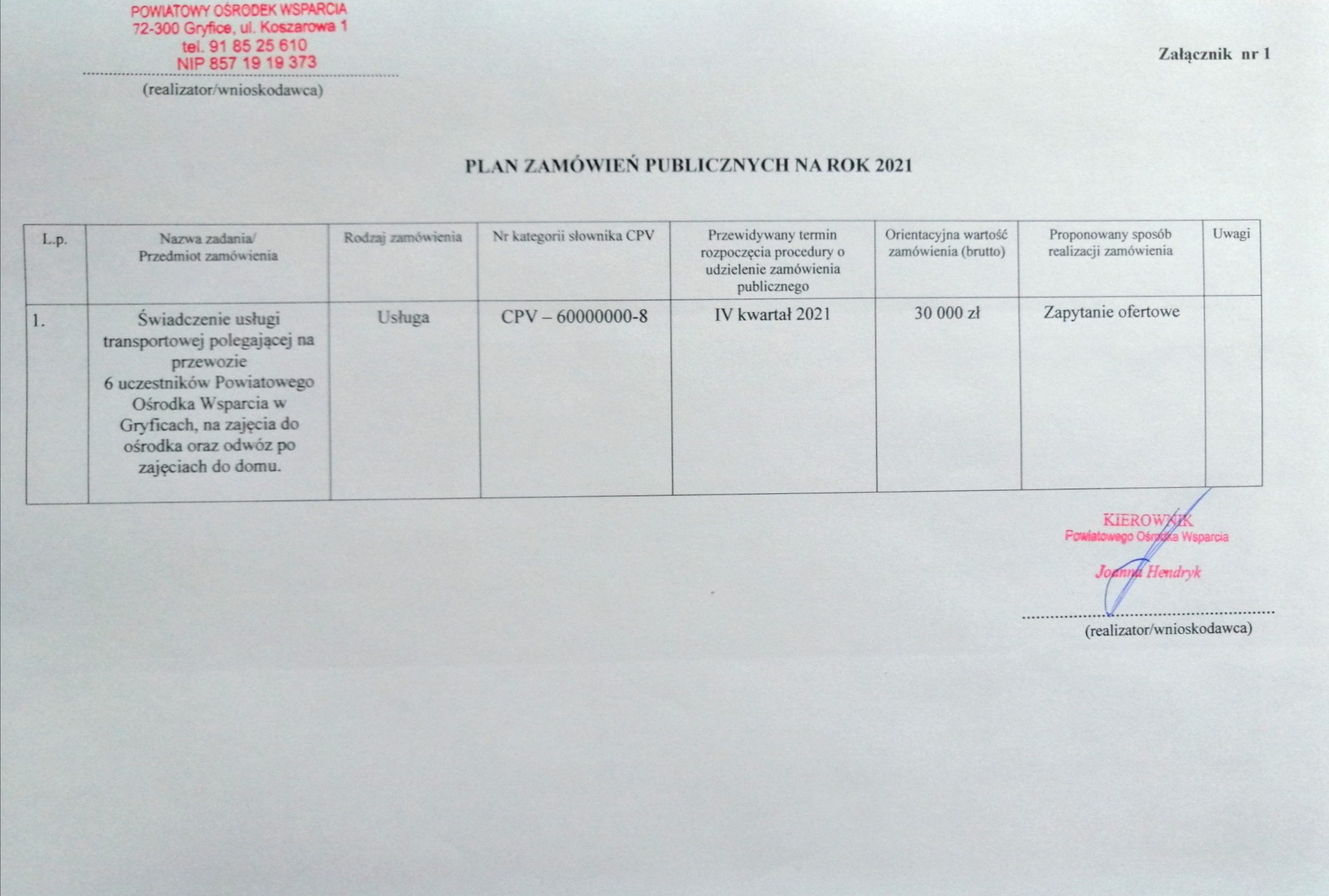 Plan zamówień publicznych na 2021 rok