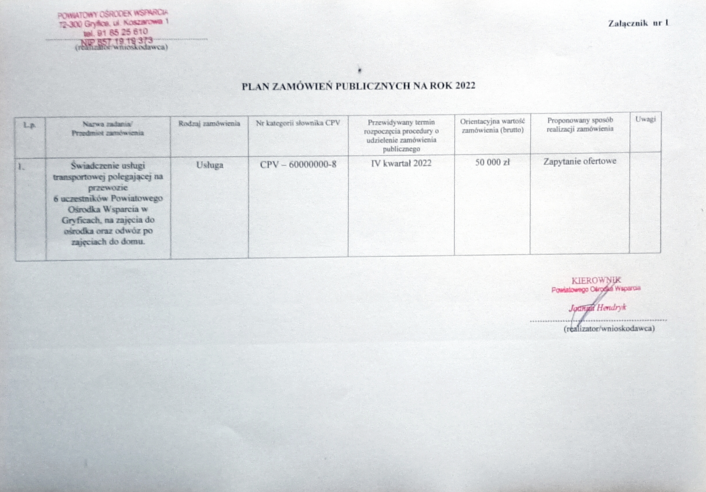 Plan zamówień publicznych na 2022 rok
