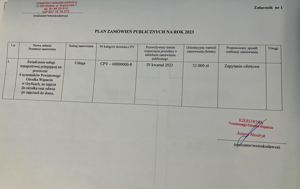 Plan zamówień publicznych na 2023 rok