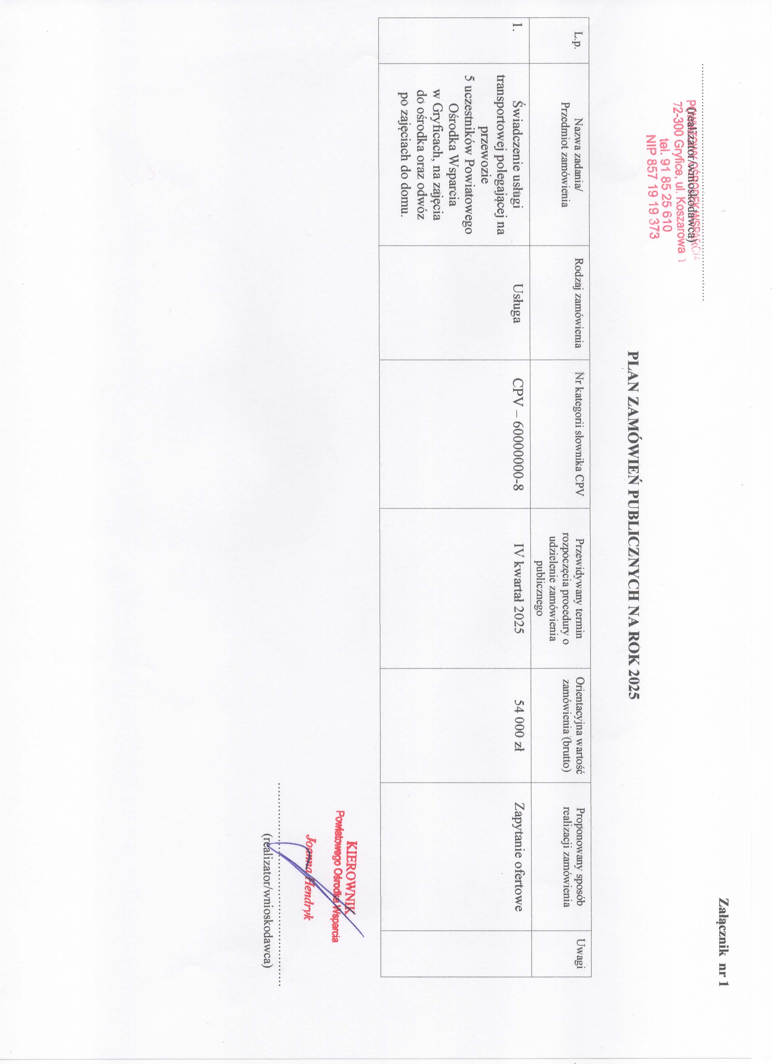 Plan zamówień publicznych na 2025 rok