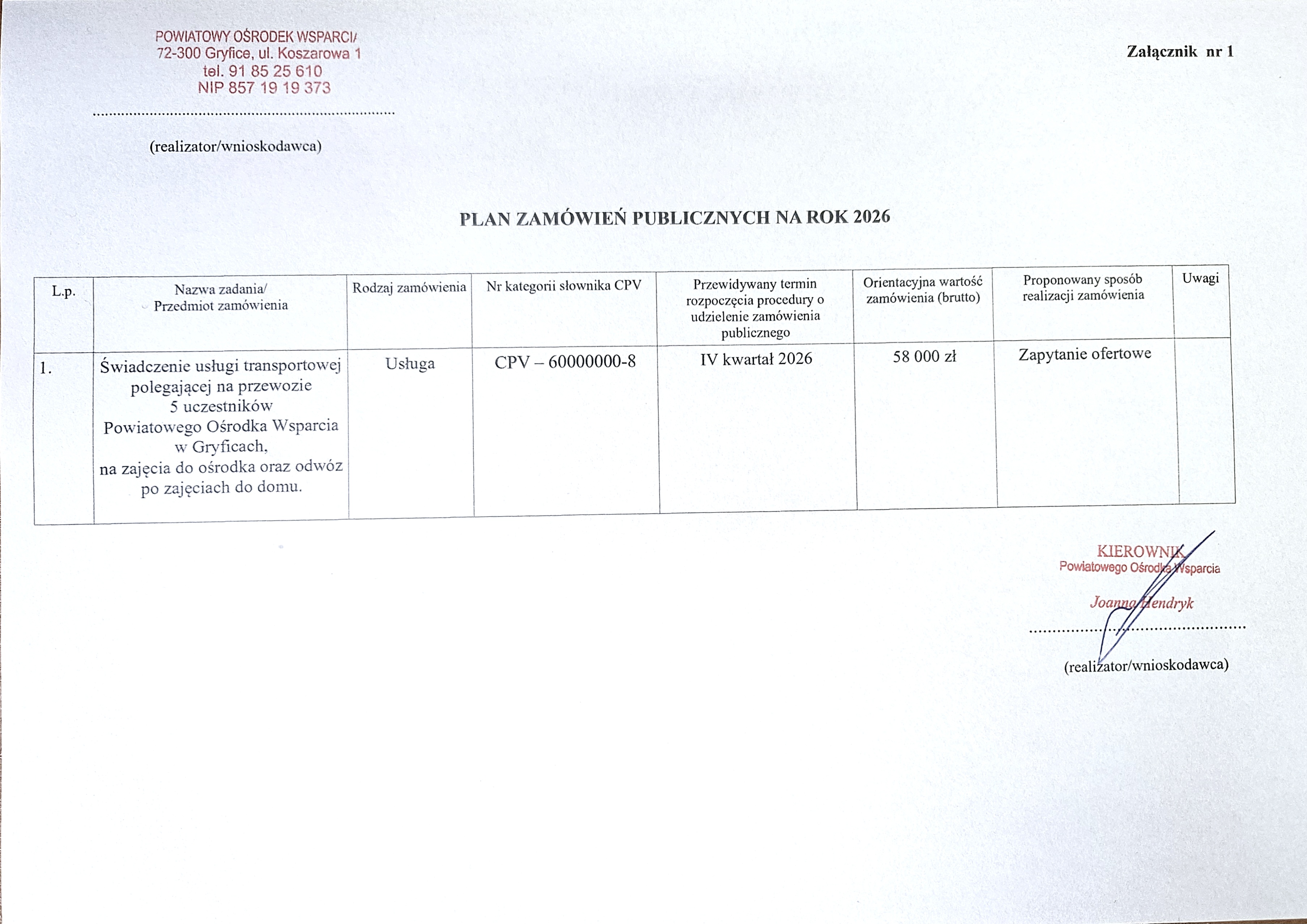 Plan zamówień publicznych na 2026 rok